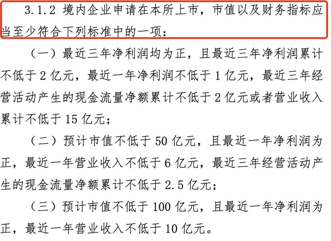 值得一提的是,今年4月,深交所将上市财务标准进行了修订,要求申请上市企业需要至少满足三项标准中的一项,包括最近一年净利润不低于1亿元、最近三年经营活动现金流净额累计不低于2.5亿元以及预计市值不低于100亿元等。