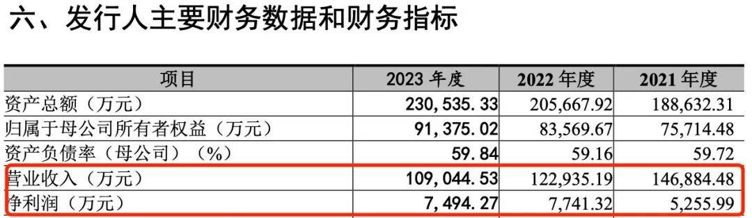 此后,房地产景气度下行,宏业基的营收也一路下滑,2022年和2023年,营业收入分别为12.29亿元、10.90亿元,同比下降16.30%、11.30%;同期净利润7741.32万元、7494.27万元,同比增速47.29%、-3.19%。