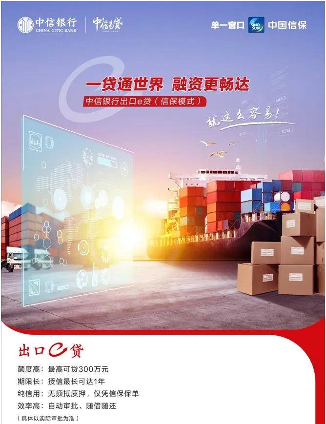 在数字化浪潮的推动下,中信银行积极拥抱新技术,不断提升融资服务的数字化水平。其中,“出口e贷”作为中信银行的明星产品之一,更是将数字化服务推向了新的高度。