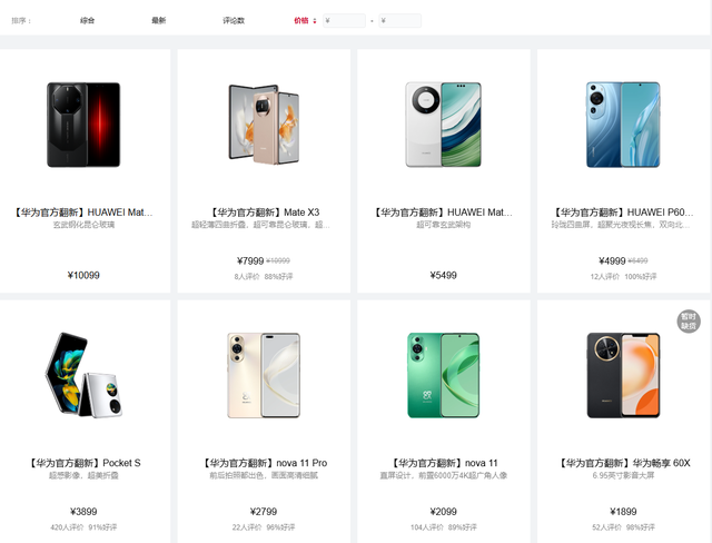 翻新产品的价格通常低于全新产品,能让消费者以较低成本获得品牌产品的体验,如华为Mate X3官翻版直降4000元,吸引了众多消费者.