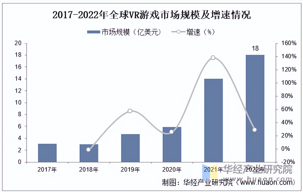 近些年,VR/AR逐渐走向人们的视野,越来越多的人接触到了相关设备。其中人们最为关注的便是游戏领域的应用,据统计,全球VR游戏市场规模逐年攀升,截止到2022年,市场规模已达到18亿美元,同比增长28.57%。