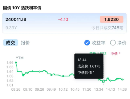 10年国债收益率午后一度下滑逾4个BP,跌破1.62%,再创新低。