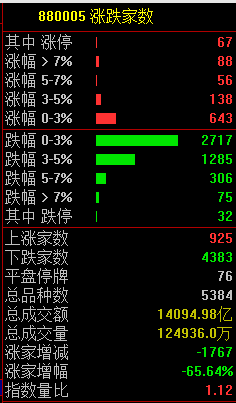 市场共925只个股上涨,67只个股涨停,4383只个股下跌。