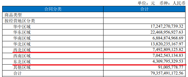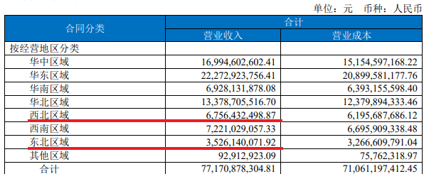 2024年半年报显示,西北地区营收约68亿元,同比减少约7亿元;东北地区营收35亿元,同比减少近8亿元。