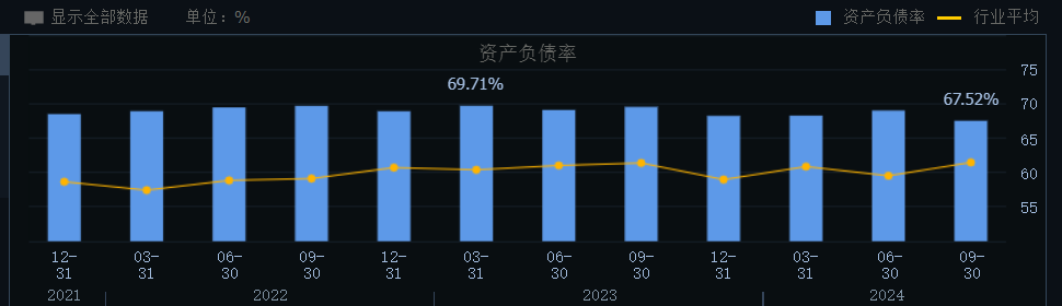 截至2024年9月末,九州通资产负债率为68%,高于医药流通行业的平均值65%。