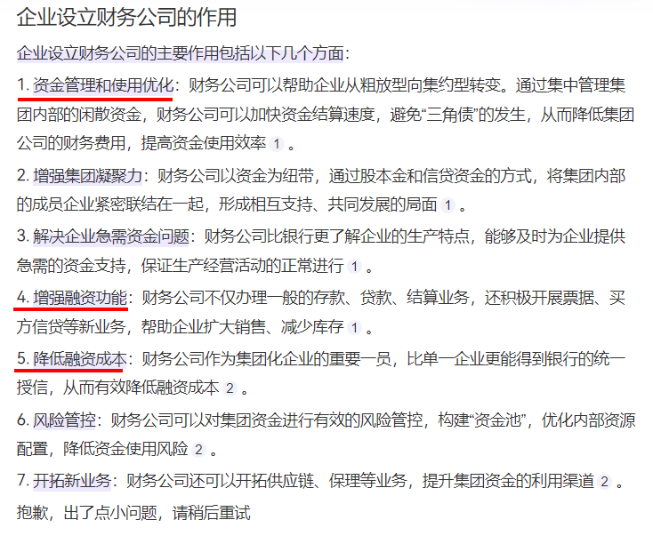 财务公司往往被称作企业的“内部银行”。通过设立财务公司,可以提高公司资金周转效率,拓宽融资渠道,降低资金成本。