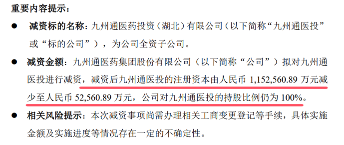也是在12月18日,九州通还发布两个公告——拟转让不超过17亿元的医药仓储物流资产;拟设立财务公司,同时对旗下子公司九州通医投大幅减资110亿元。
