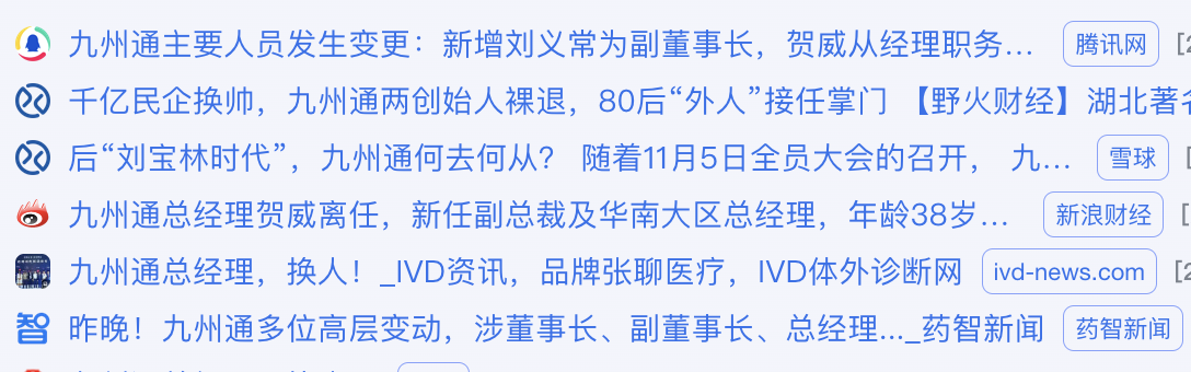 2024年下半年,九州通核心人事出现较大变动,涉及副董事长、总经理、业务总裁多个职位,引起市场关注。