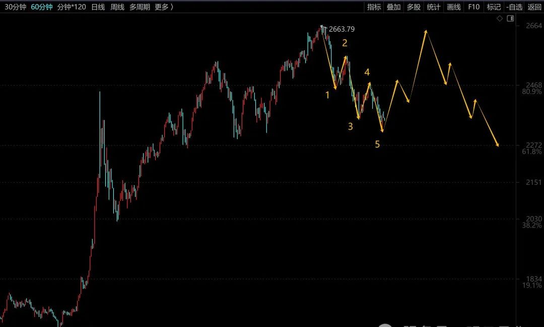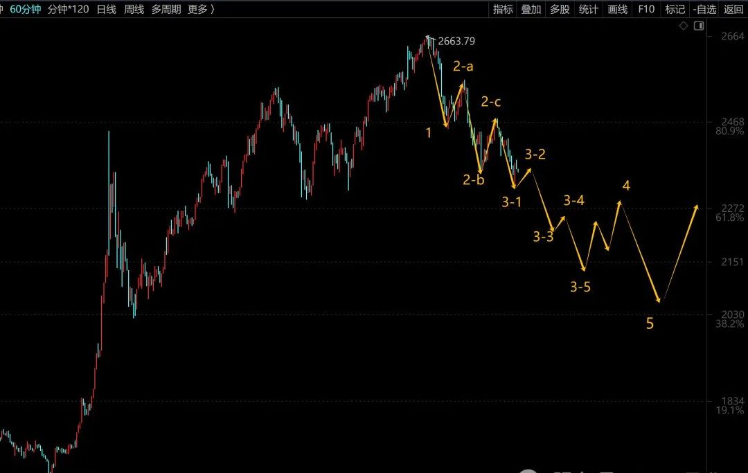 中长线来看,目前刚开始第3浪,1月份都是下跌的到春节,然后抄底,最近10年,年年都是这样循环,每年1月份暴跌一波,然后2月份大涨,3月4月横盘,之后开始慢跌到下半年有反弹,又慢慢跌到年底。 目前,波浪假设一