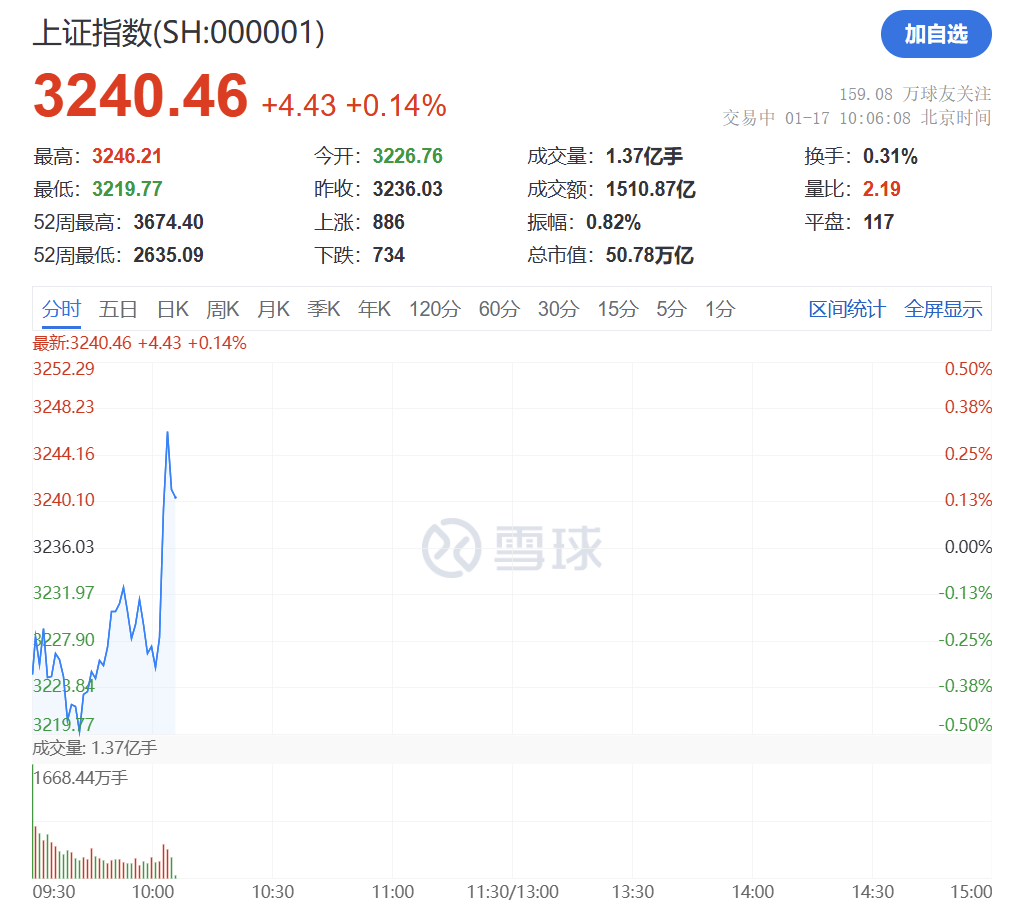 1月17日,A股市场早间开盘不振,持续窄幅震荡。但上午10点后,大盘忽然直线拉升。