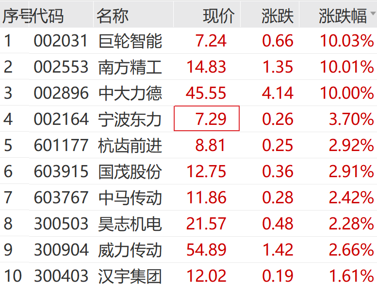 减速器概念同步走高,巨轮智能、南方精工等涨停。