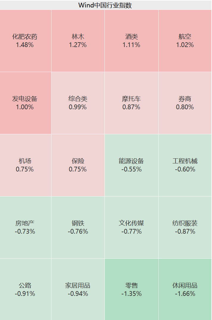 盘面上,上午食品饮料、非银金融、基础化工、计算机等集体拉升,林木、酒业、航空、发电设备等板块表现较好;商贸零售、纺织服饰等板块不振。