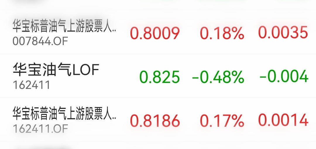 1月16日华宝油气A162411基金净值0.8186,涨跌幅+0.17%,1月16日华宝油气C007844基金净值0.8009,涨跌幅+0.18%。