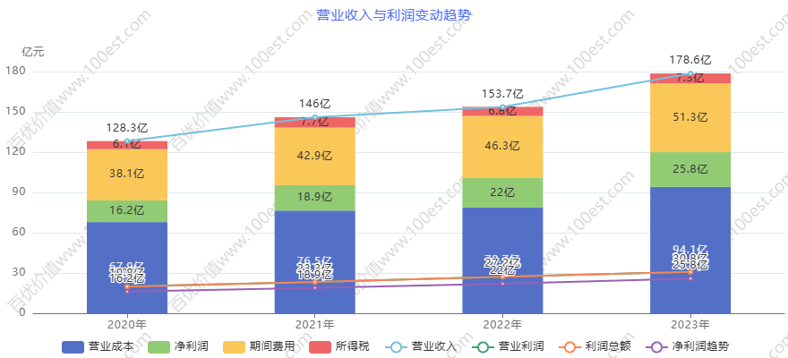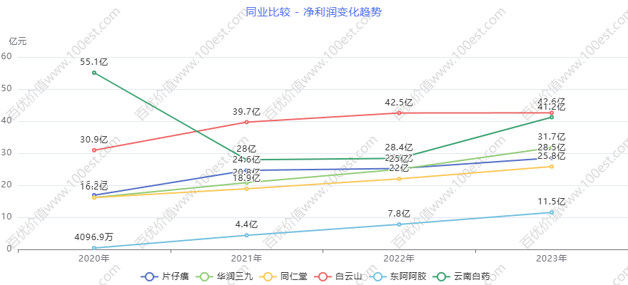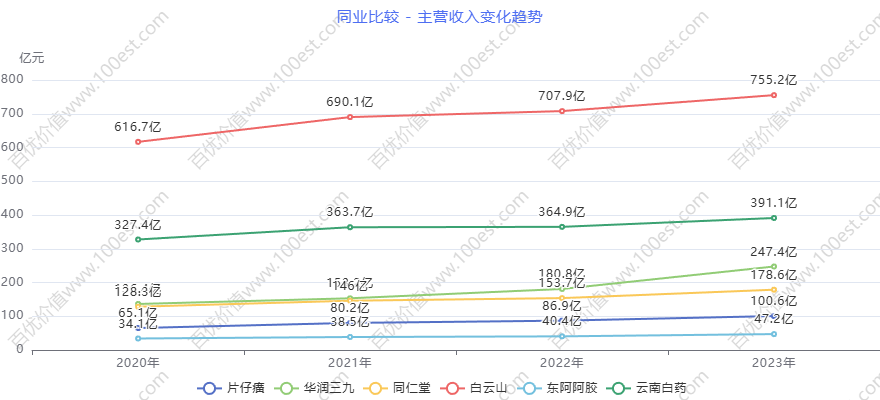 借由百优价值网(www.100est.com)提供的可视财报分析工具,我们对 $片仔癀(SH600436)$ 2019年至2023年的营业收入和净利润增长情况进行深入剖析,并对其2024年和2025年的盈利情况从行业背景和发展趋势角度作了预测,分析过程中将其与同行业$同仁堂(SH600085)$和$云南白药(SZ000538)$等进行比较分析,旨在为投资者和金融从业者提供全面、系统且具有深度的分析,助力其精准把握公司财务状况,从而为投资决策和财务研究提供有力依据。