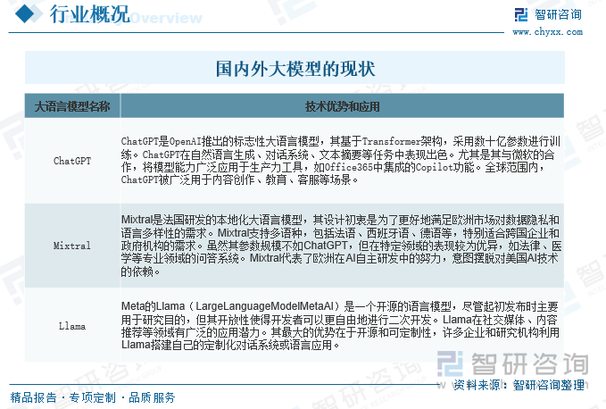 注:本文节选出自智研咨询发布的《2025年中国大语言模型正在迅速推进,展现巨大的应用潜力[图]》行业分析文章,如需获取行业文章全部内容,可进入智研咨询搜索查看。