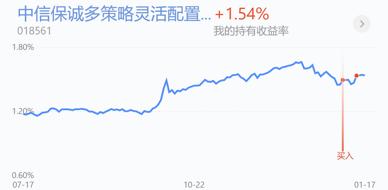 买入$中信保诚多策略混合(LOF)C(OTCFUND|018561)$$1000,这是我目前正在布局的一只微小盘混合基金,持有了10天目前收益1.54%,表现非常优秀,扛过了一波大的回撤,目前已经开启了反弹行情。我之所以选择了这个微小盘基金是因为这只基金是近两年同类的收益冠军,过往业绩非常优秀,近6个月涨幅达到了30.63%远超赛道基准的10.39%,基金经理长期关注小微盘,对微小盘公司的研究非常渗透,往往能挖掘到优质的好公司。目前市场已经开始了反弹行情,中小市值公司的弹性会更好,今天我继续布局加仓10000。