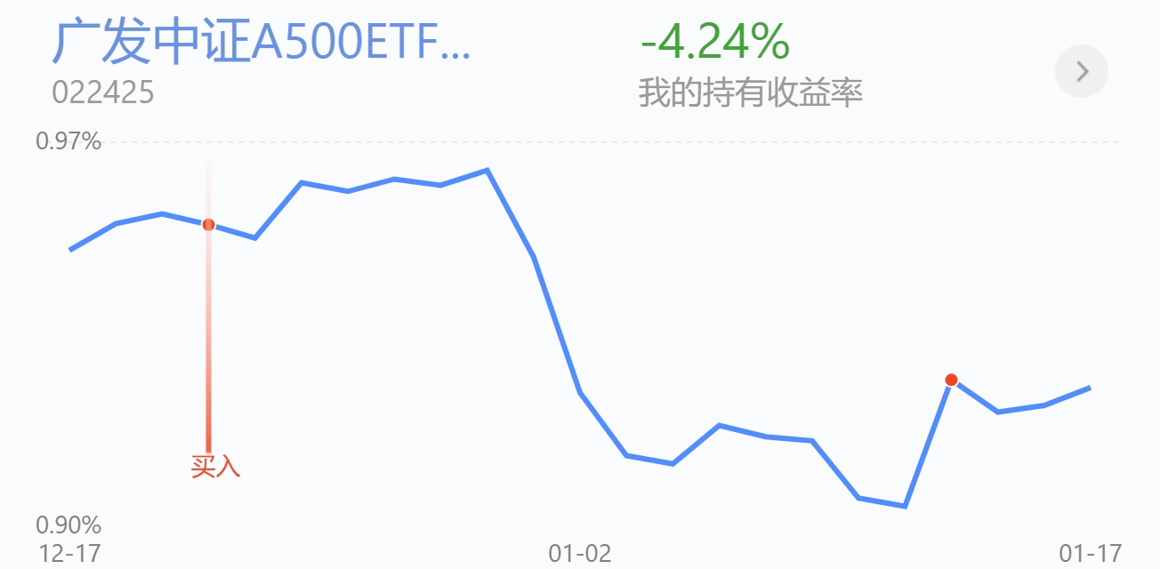 买入$广发中证A500ETF联接C(OTCFUND|022425)$3000,中证A500指数编制时综合考量市值、流动性、ESG以及互联互通等关键要素,进行科学且均衡的配置,纳入了更多新质生产力方向的新兴行业,这种均衡的持仓配置使得中证A500指数在回撤控制的非常不错,又能抗又能打。今年会实行更加宽松的货币政策,宏观政策面也利好不断,2024年GDP完成了5%的目标,12月的社融数据也非常亮眼,M2同比增长7.3%,经济明显开始回暖。在新“国九条”落地实行的大环境下,A500作为核心资产肯定会更加受到资金青睐。最近1个月市场经过了一波深度回调,目前已经开始企稳反弹,3150点的底部区域基本能确定了,下方3087的缺口不会去补了,总体趋势开始震荡向上了,今天A500继续上涨0.9%,这里是不错的左侧布局机会,今天我继续布局加仓3000,讨论区6楼还有红包可以领取。