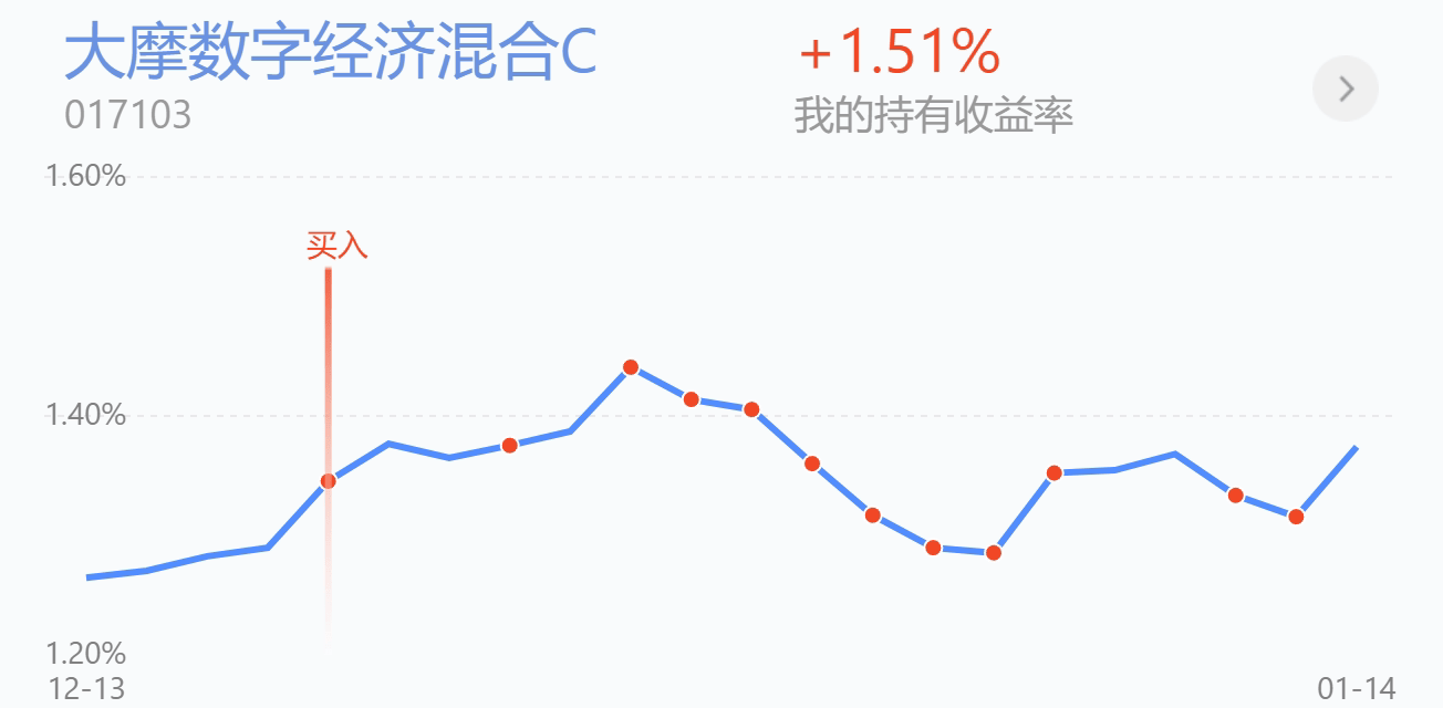 $大摩数字经济混合C$今天表现不错,躺平不动了,目前的持仓是算力芯片加消费电子为主,CPO的仓位明显不多。