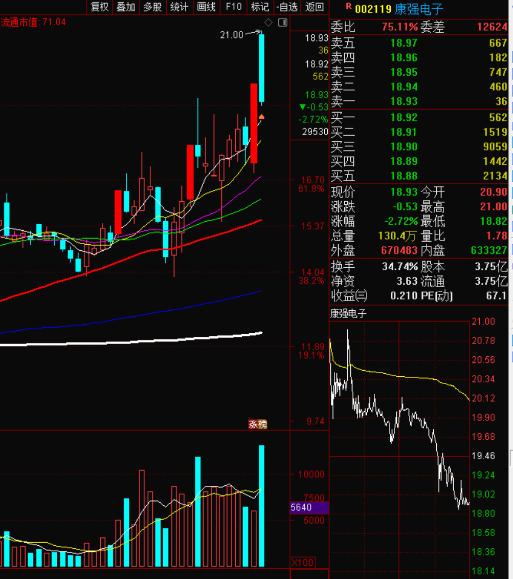 他在上一个交易日已经瞄准了康强电子,该公司主营半导体封装材料行业,买入3.71万手,均价19.45,合计7224万。