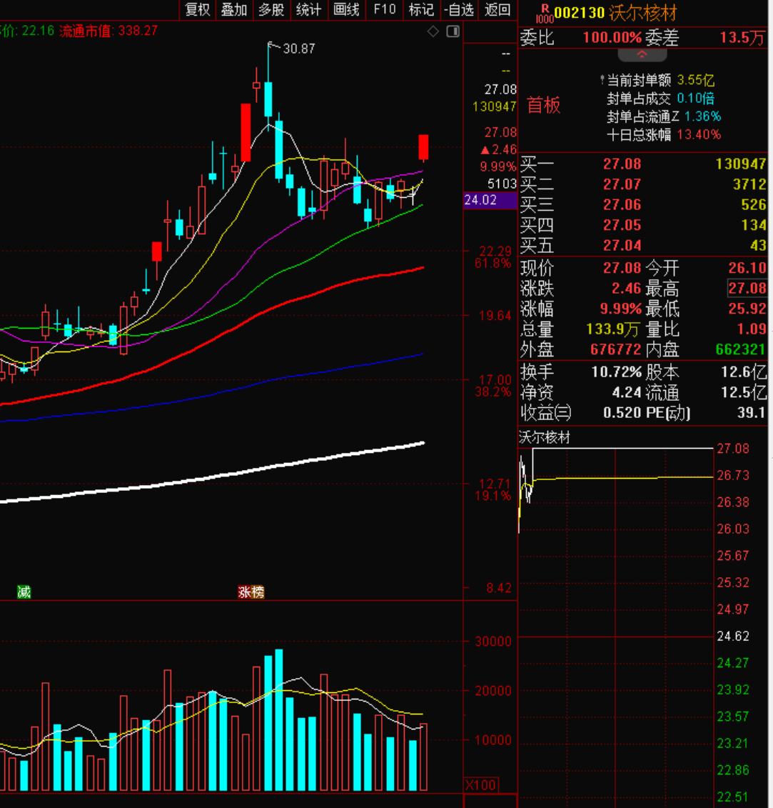 沃尔核材之前是机构重点布局的个股,这次两大知名游资入场,看看有没有大的水花。