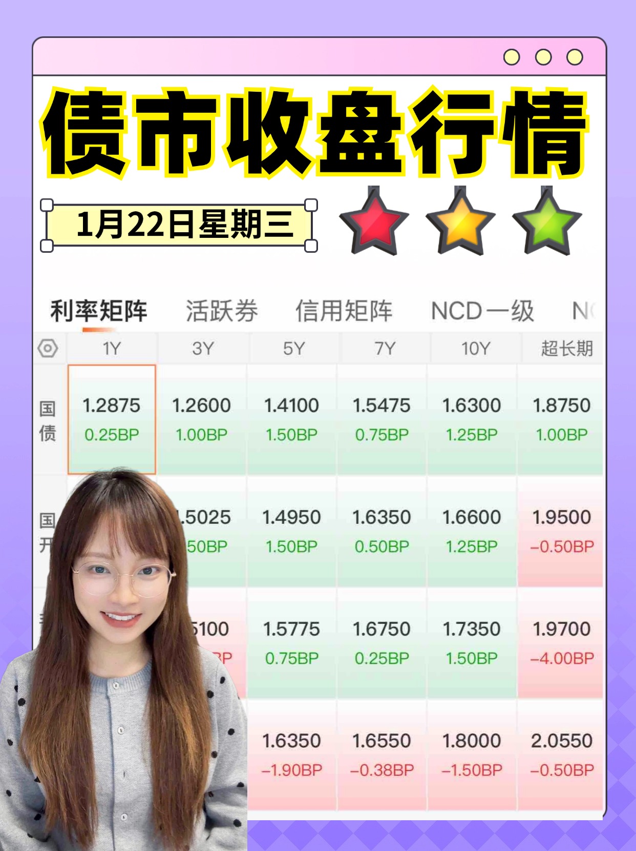 今日行情:多云。同业存单收益率继续反弹,二级市场上一年期限存单最新成交在1.6950%,较上日尾盘下行4bp,大部分小伙伴有望收蛋。