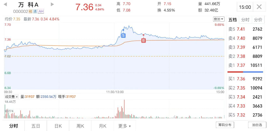 另外就是前一天买的$万科A(SZ000002)$昨天下午突然拉升,我在涨停附近卖了,下来又接回来了了,保住仓位,今天看看情况,我个人是觉得这个位置金融+地产都可以重点关注。