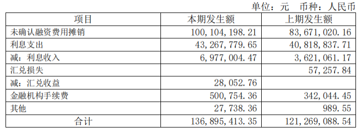 根据新五丰2024年半年报披露的数据,其财务费用很大一部分来源于未确认融资费用摊销,该部分费用产生主要源于公司融资租赁时产生的费用。