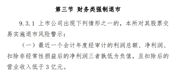 首先,我们看和宝塔实业直接相关的退市新规——业绩不达标:利润总额、净利润、扣非净利润三者孰低为负值,且营业收入不足3亿元。