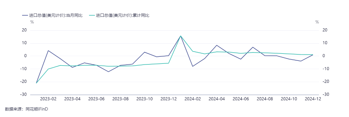 12月进口同比1.0%,明显强于前值和预期,进口数据与国内高频数据释放的信号较为一致,且制造业12月PMI继续处于扩张区间。偏强的主要因素是国内有效需求整体有所改善。