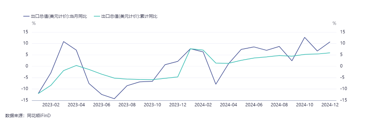 12月出口同比10.7%,明显强于预期和前值,12月出口数据明显偏强主要由于外贸商“抢出口”因素和海外市场需求保持韧性等因素影响。