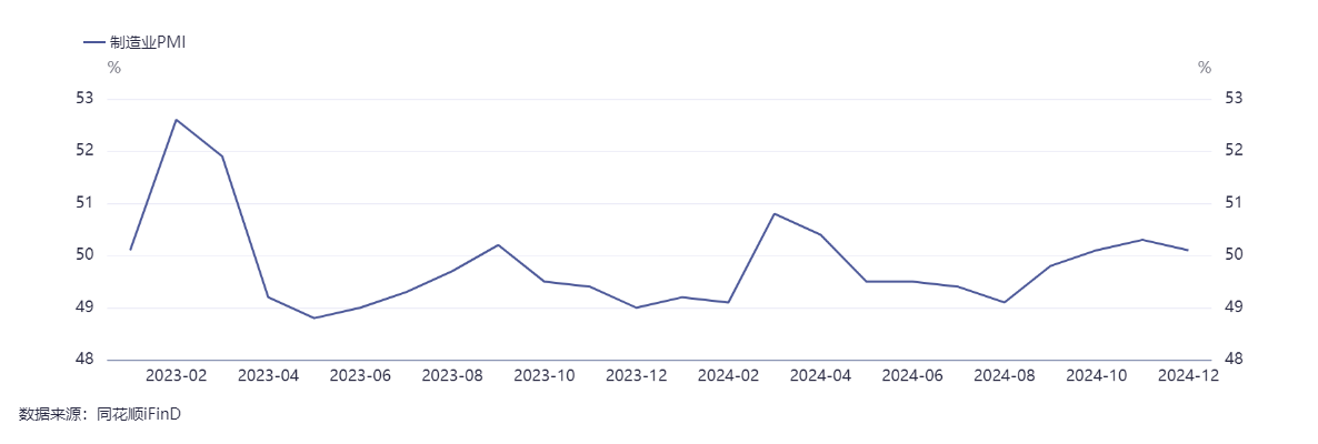 12月制造业PMI录得50.1%,较上月回落0.2个百分点,继续处于荣枯分界线以上。需求端分项延续回升,与12月公布的一系列高频数据的表现较为一致。