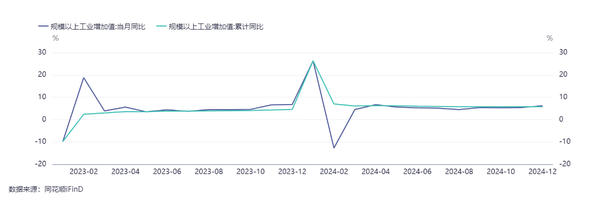 12月工业增加值同比增长6.2%,较前值回升0.8个百分点,且高于市场预期,环比增速为0.64%。工业增加值同比增速有所回升表明工业生产有所提升。从行业看,大多数行业增速有所反弹。