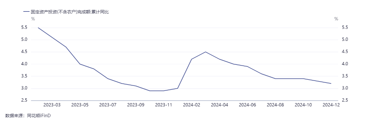 1-12月固定资产投资同比增长3.2%,与前值相比小幅下跌。地产投资进一步下行,制造业投资和基建投资基本维持高位。