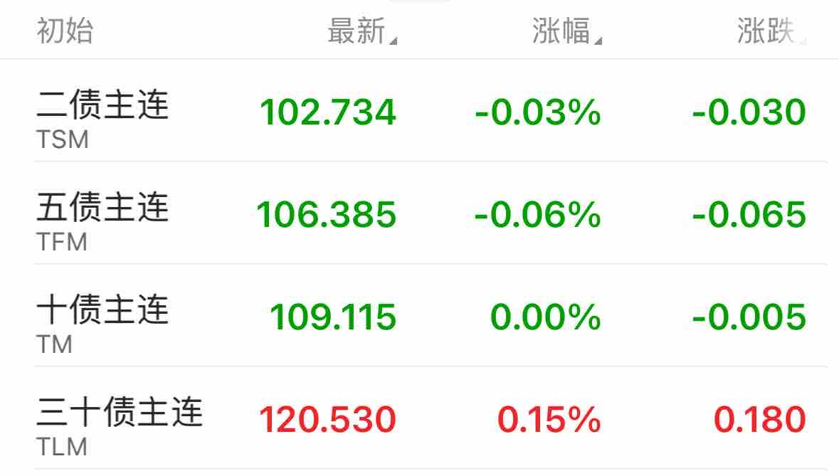 今日行情:多云。今天国债期货低开后震荡上行,目前除三十年国债外小幅收跌,持有超长期国债期货的仍有机会收蛋~