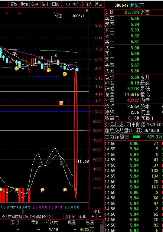 超三这里上方基点20均下坡,10均上坡,上坡是有压力的存在,他的10均化解也要3-4日,KD开口-11.58,还不是变盘点,形态上这里就是要横盘做箱体,把均线系统盘好,目前地量阶段,随时放量会有一根一阳收多天的阳线,,操作上耐心潜伏。这里没破前低前也不会下台阶。快2日,慢3天就要表态,目前是业绩利空年前消化。耐心,不要倒在转折处。