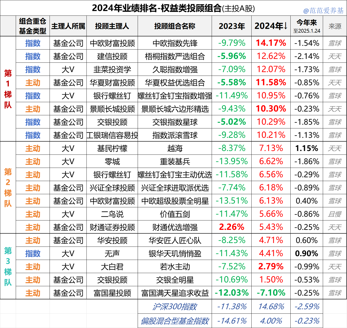 今天给大家盘点一波迟来的“基金投顾组合”2024年的业绩排名。