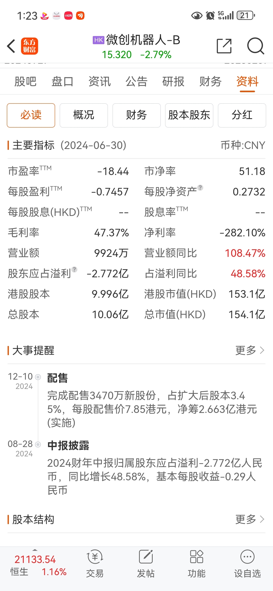 总之,微创医疗制药能够扭亏,其后续发展潜力远远大于惠泰医疗,惠泰抱住迈瑞大腿发展,微创医疗却能独立发展壮大。高投入研发的微创医疗,创新能力毋庸置疑,在国内高端器械领域首屈一指。惠泰医疗有多高估,微创医疗就有多低估,目前投资微创有极高风险,但业绩改善潜力,股价上涨潜力等,远超惠泰医疗。只要2026年能扭亏,微创300亿市值毋庸置疑,也就是目前的两倍。微创还有机器人,心通医疗,也会2026年盈亏平衡,更是业绩筑基的保障,机器人的销售营收业绩改善潜力最大。