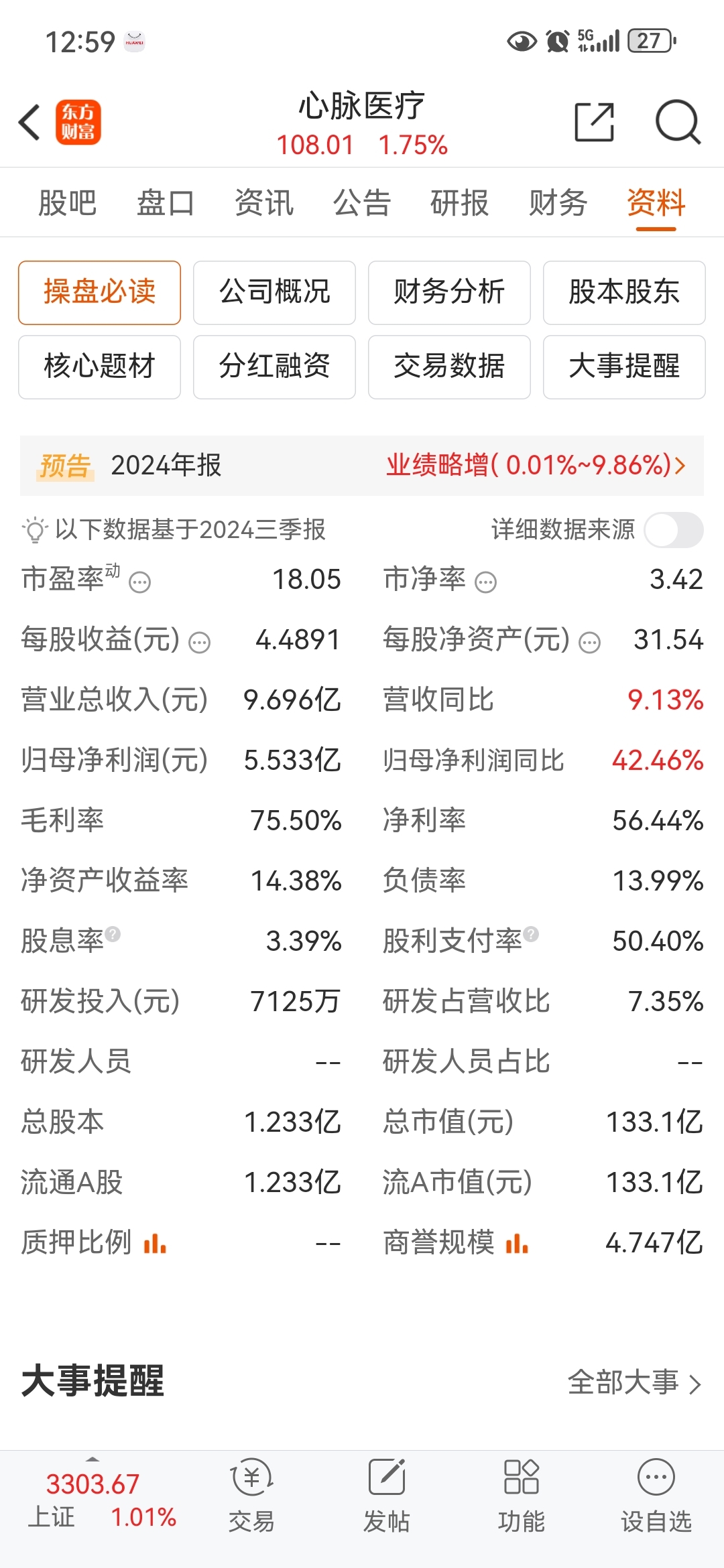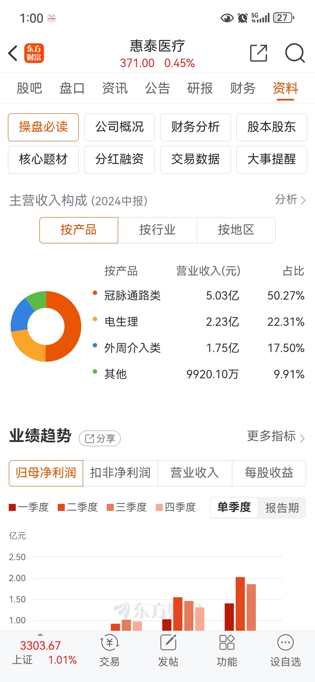 1. **整体冠脉业务收入增长**