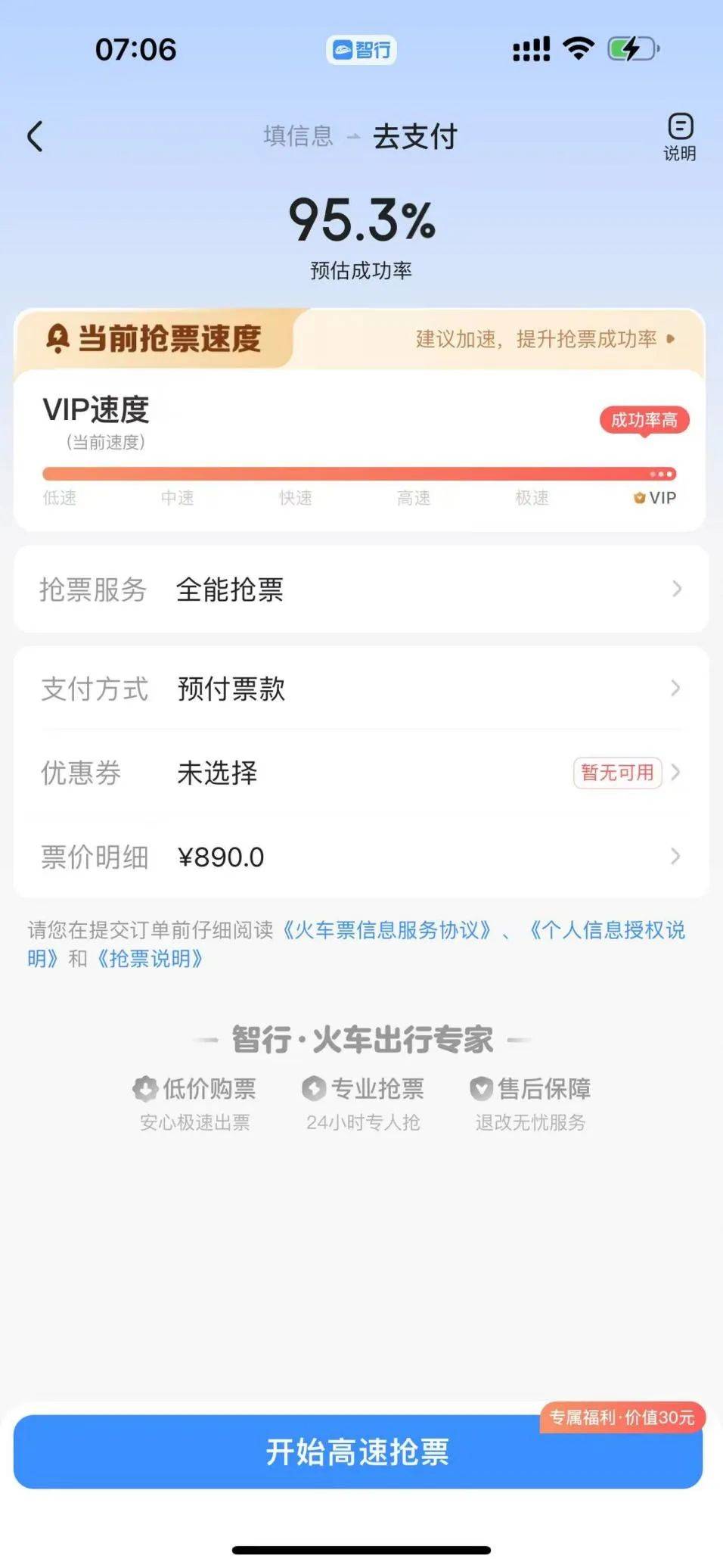 换言之,智行火车票的背后与携程存在着千丝万缕的联系,而携程App中也包含着“高速抢票”服务,只不过携程上明确标识了“高速抢票”为附加服务。