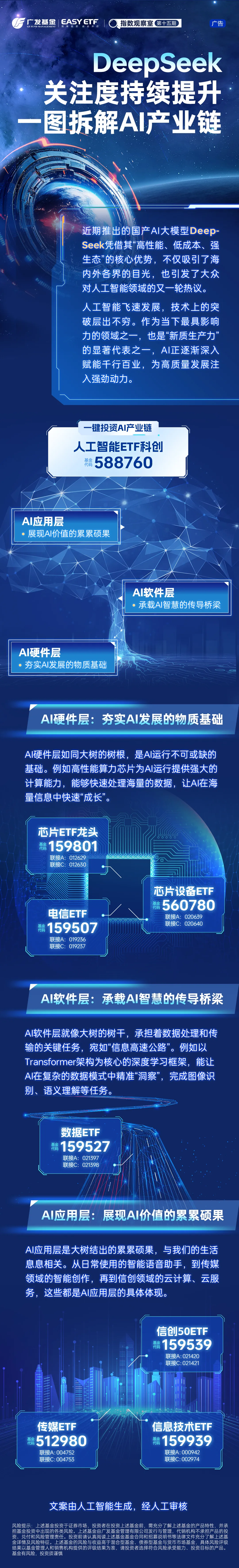 $人工智能ETF科创(SH588760)$$芯片ETF龙头(SZ159801)$$广发国证半导体芯片ETF联接A(OTCFUND|012629)$$广发国证半导体芯片ETF联接C(OTCFUND|012630)$$芯片设备ETF(SH560780)$$广发中证半导体材料设备ETF发起式联接A(OTCFUND|020639)$$广发中证半导体材料设备ETF发起式联接C(OTCFUND|020640)$$电信ETF(SZ159507)$$广发国证通信ETF发起式联接A(OTCFUND|019236)$$广发国证通信ETF发起式联接C(OTCFUND|019237)$$芯片设备ETF(SH560780)$$广发中证半导体材料设备ETF发起式联接A(OTCFUND|020639)$$广发中证半导体材料设备ETF发起式联接C(OTCFUND|020640)$$数据ETF(SZ159527)$$广发中证云计算与大数据ETF发起式联接A(OTCFUND|021397)$$广发中证云计算与大数据ETF发起式联接C(OTCFUND|021398)$$广发中证传媒ETF联接A(OTCFUND|004752)$$广发中证传媒ETF联接C(OTCFUND|004753)$$广发信息技术联接A(OTCFUND|000942)$$广发信息技术联接C(OTCFUND|002974)$