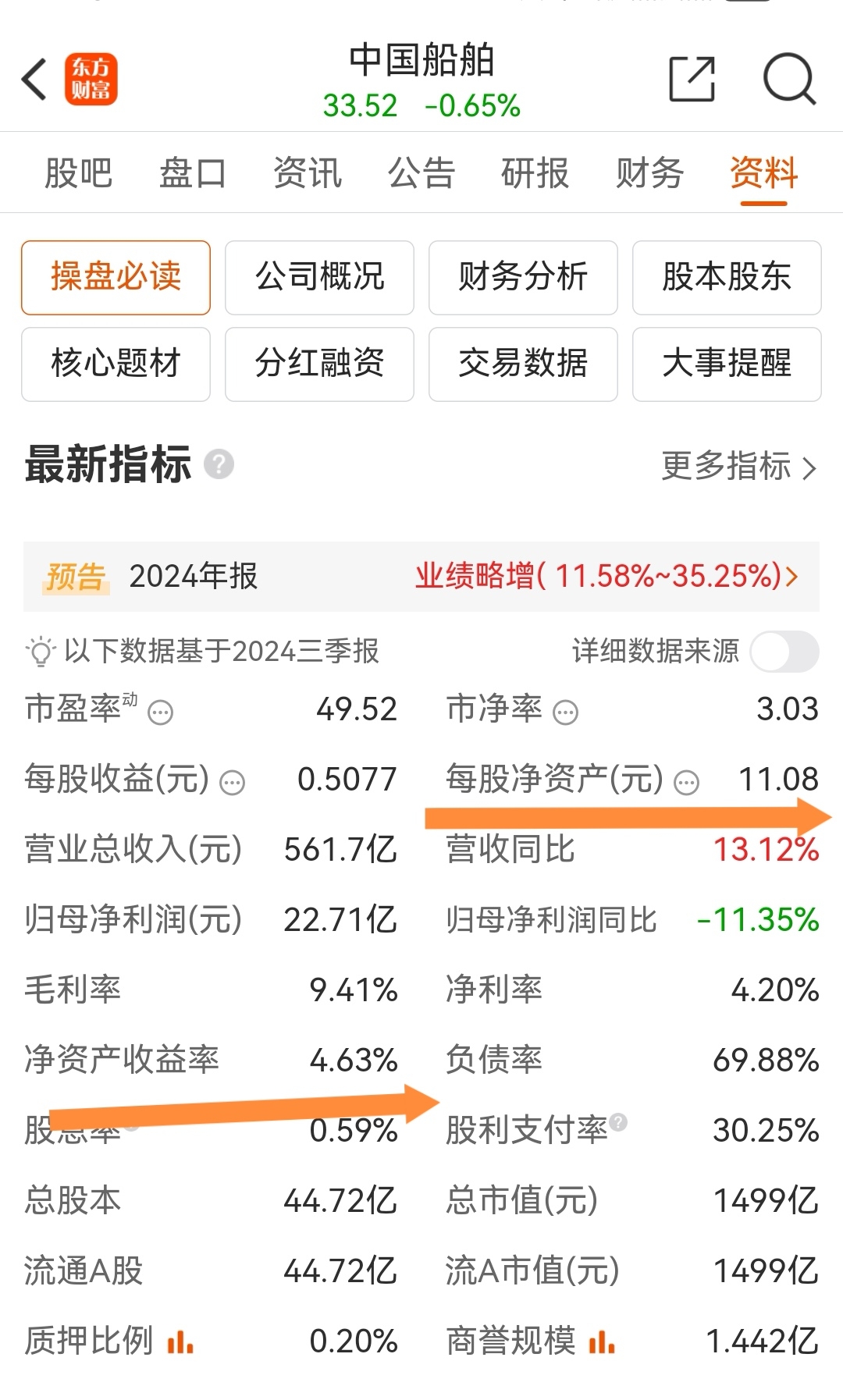 $中国重工(SH601989)$ $中国船舶(SH600150)$ 中国船舶股价泡沫严重到无法形容底部导致本轮行情两市倒数第一(暴雷股除外),重工被拖累倒数第二。中国船舶每股净资产只有11元,净资产收益率才4%,股价现在都有34元,300%市净率,在大盘中字头股里,绝无仅有,这泡沫严重到无法形容底部,纯属中信把股价乱炒上去就是为了吞并重工的伎俩。