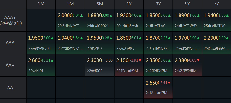 [信用债]:AA和AA+的表现好些,有红盘,中高等级金融债调整,等轮动了。