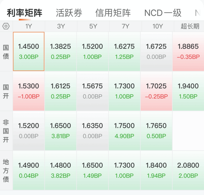 今日行情:雨天。利率债早盘涨跌互现,午后随着股市震荡走低,利率债逐步拉升,尾盘部分出现翻红,大部分涨跌幅度都不大。今天估计大部分小伙伴要碎蛋了。