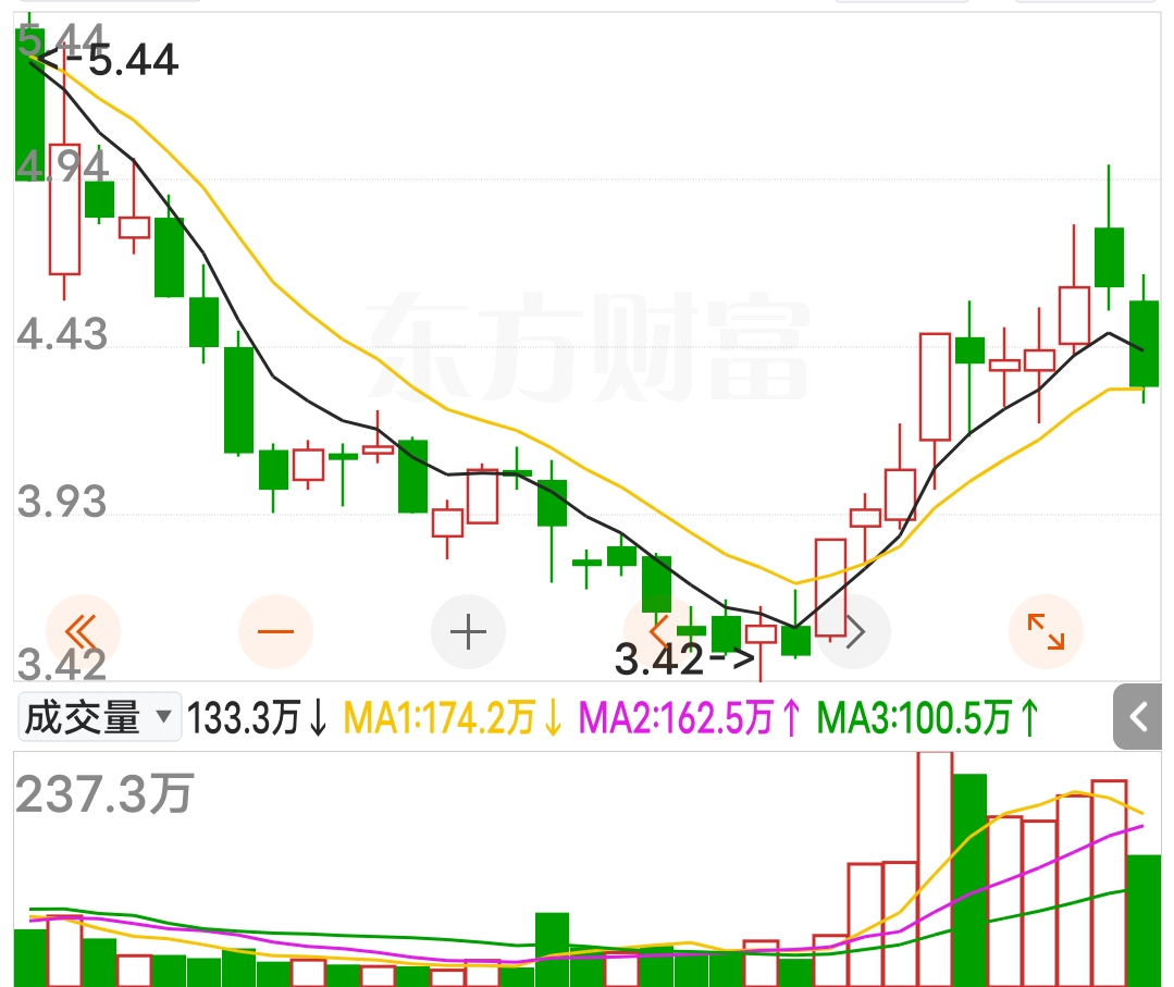 稳健型在4.15附近上车,胆小型在4.05等候,此点位是回撤极限。