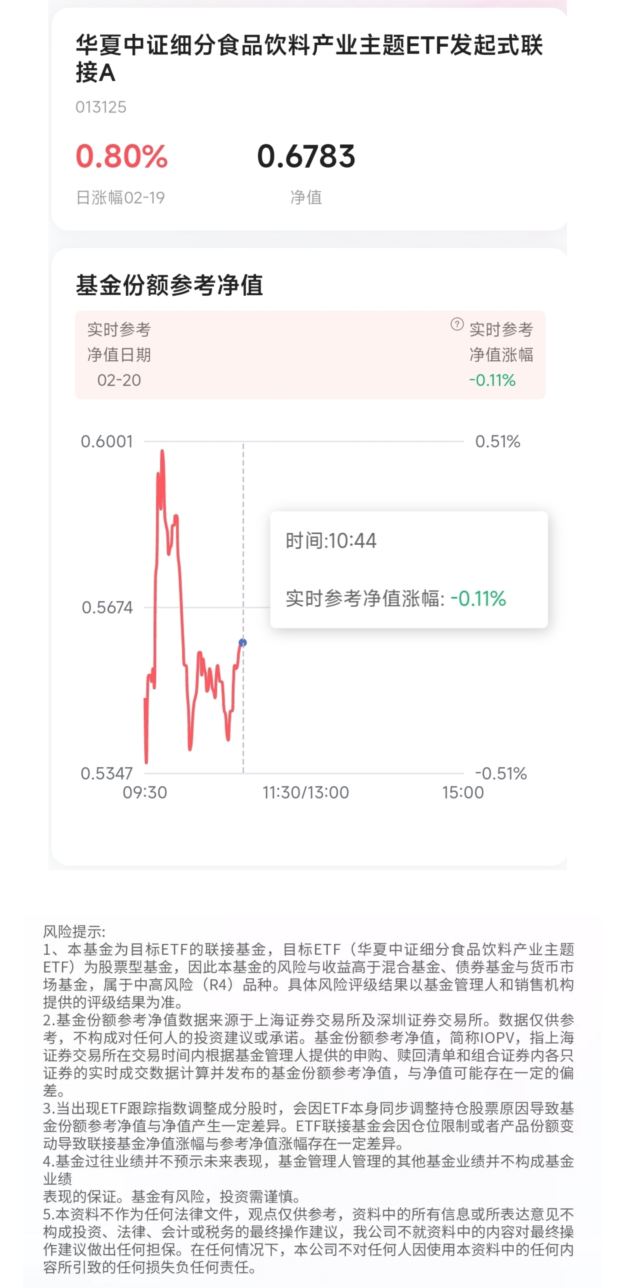 截止至2025年2月20日10:44,本基金跟踪目标基金的实时参考净值涨幅为-0.11%,其跟踪的指数最新PB(市净率)为4.47,处于较低区间。