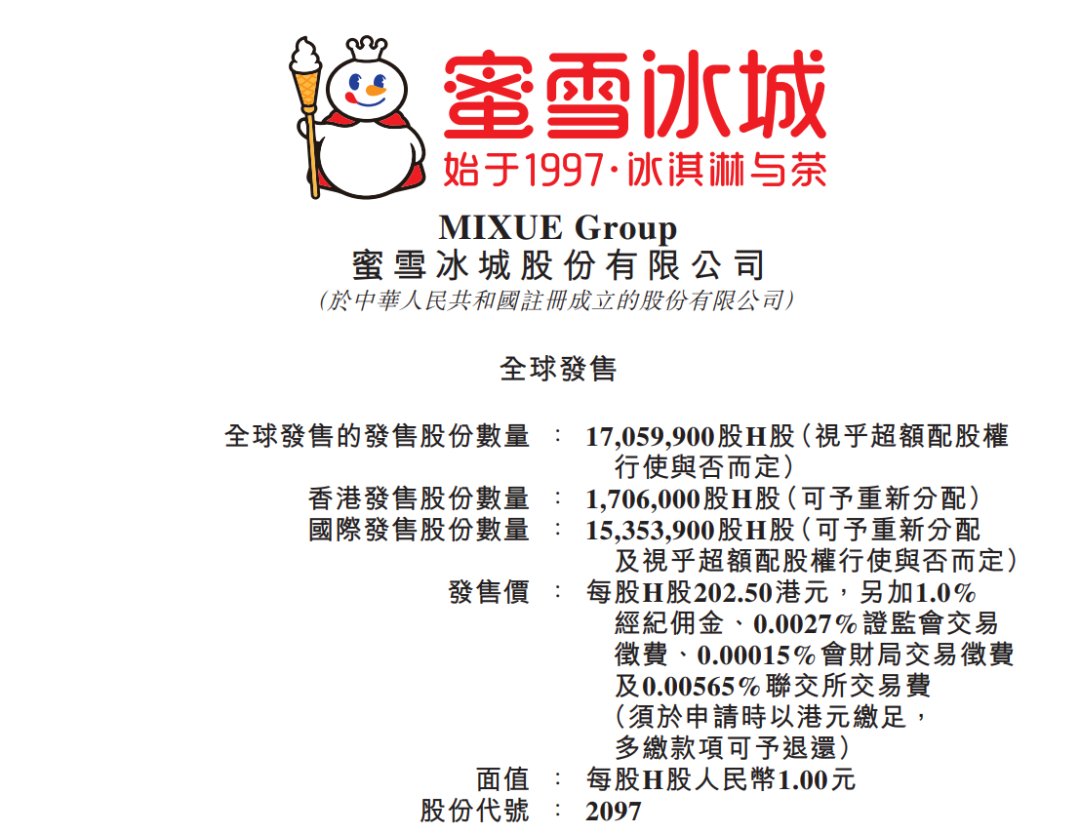 2月21日,蜜雪冰城股份有限公司(以下简称蜜雪冰城)正式披露全球发售公告,宣布公司将于2月21日至2月26日招股,计划于3月3日在港交所主板挂牌上市。