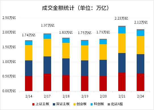 资金方面,沪深京三市成交额超过2.12万亿元,较上个交易日缩量1157亿。