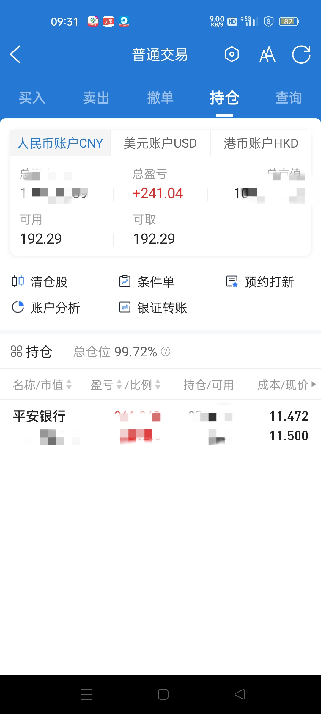 今天正式入驻平安银行,只吃分红,不交易,坚持价值投资,坚持长期投资,这是我一贯的投资宗旨。就像持有9年的光大银行一样,只复投不交易。现在只持有光大银行和平安银行两只股票,不参与短线炒作,不看任何指标,不听任何消息。不追任何题材股,只埋伏底部区域的蓝筹股。让时间为我赚钱。投资不是临时起意,而是之前就要做好充分的准备,当机会出现时要果断出击,杀伐果断,不能有任何的犹豫,即使事后证明他是错的,也要坚定的执行,这就是执行力。希望未来的投资之路越走越远,越走越宽。