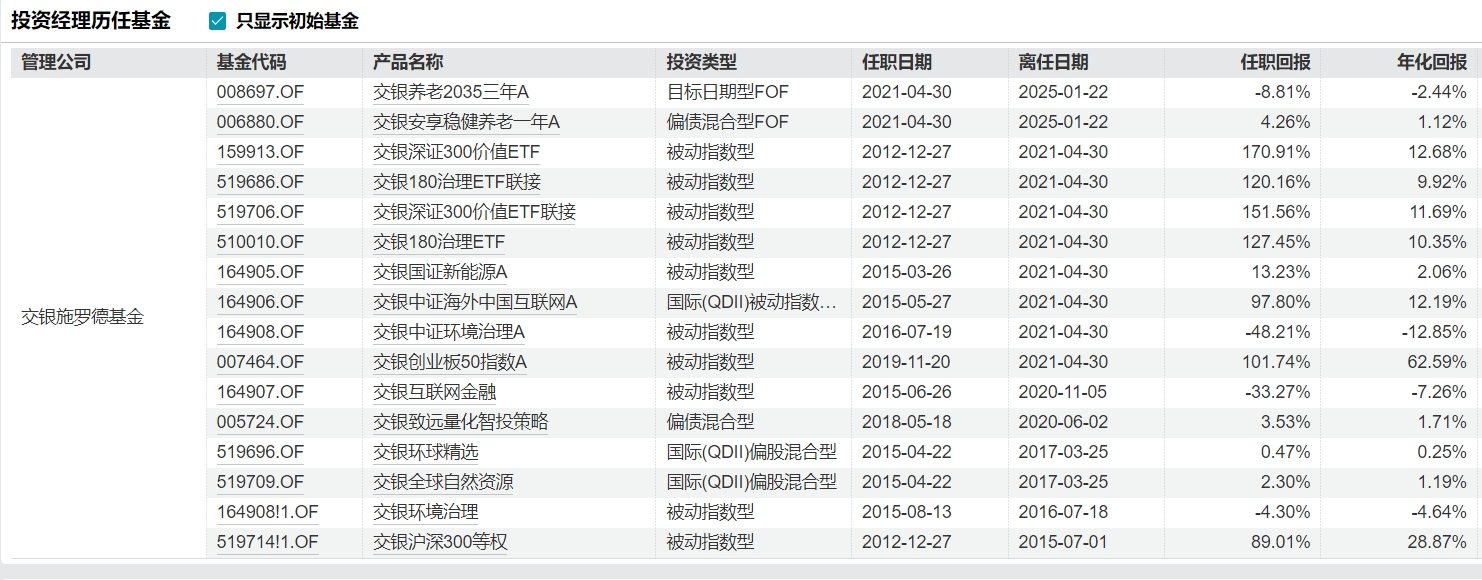 交银中证海外中国互联网指数(LOF)、交银上证180公司治理ETF、交银中证红利低波动100指数、交银创业板50指数,今日均增聘基金经理蔡铮。