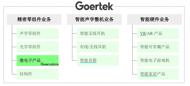 歌尔股份旗下共有精密零组件、智能声学整机、智能硬件三大业务,歌尔微是歌尔股份精密零组件业务中,主要生产微电子产品(各类传感器)的业务分部。